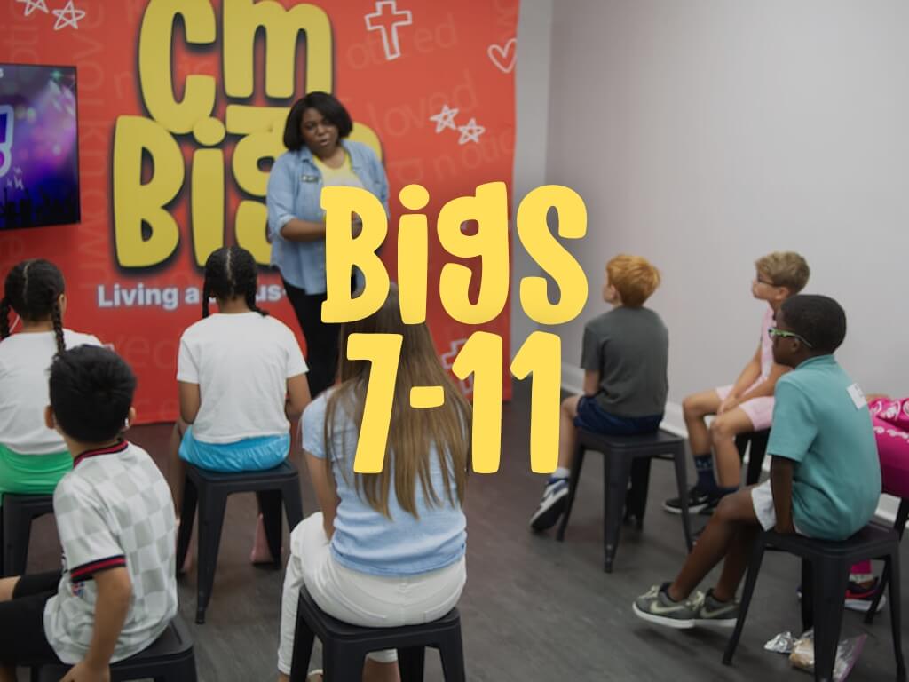 Bigs is where elementary kids (ages 7 to 11) dive deeper into God's Word with energetic worship, interactive lessons, and meaningful discussions. We create a space where kids can grow in their faith, build friendships, and discover how to live out what they’re learning in everyday life.