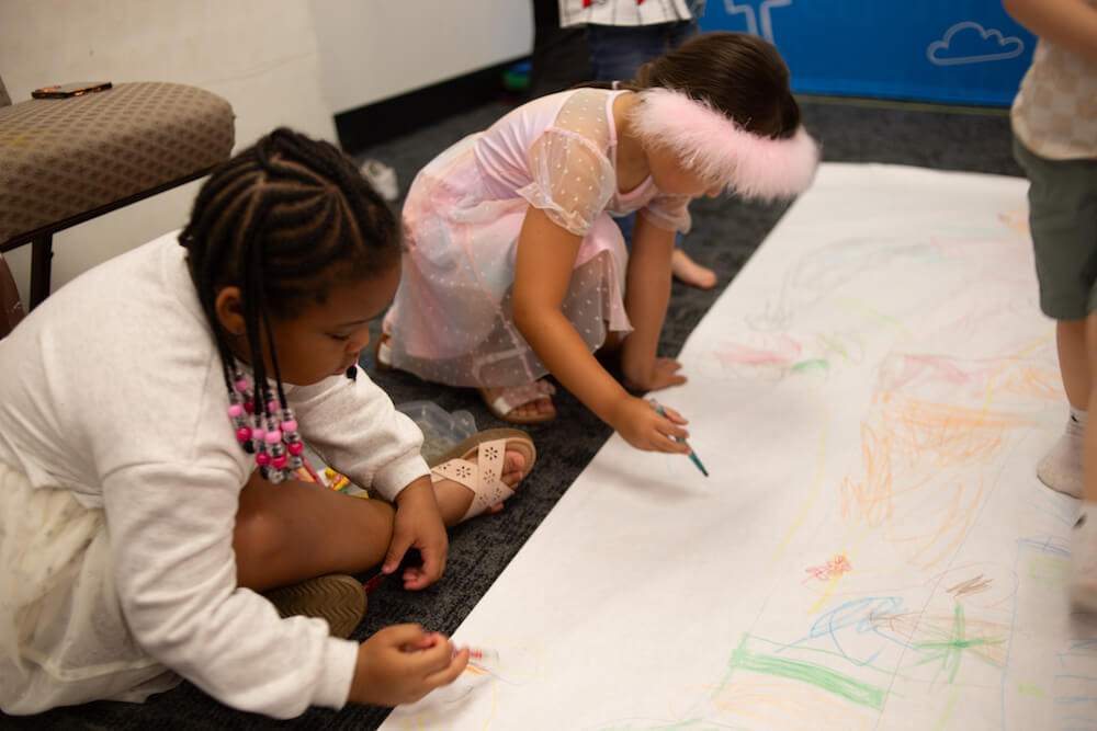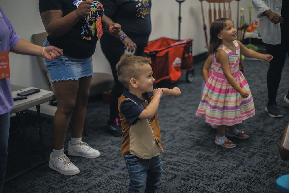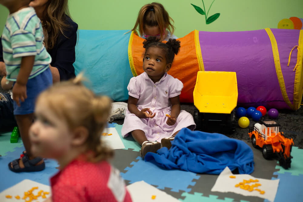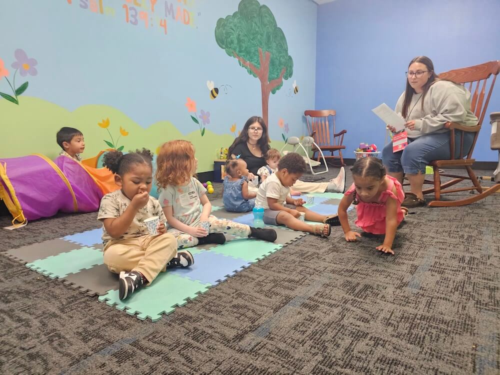 Minis is designed just for babies and toddlers, ages 0 to 3. In a safe and nurturing space, our trained team creates a loving environment where your child can begin to experience God’s love through songs, play, and care. Every volunteer is background-checked and focused on your child’s well-being.